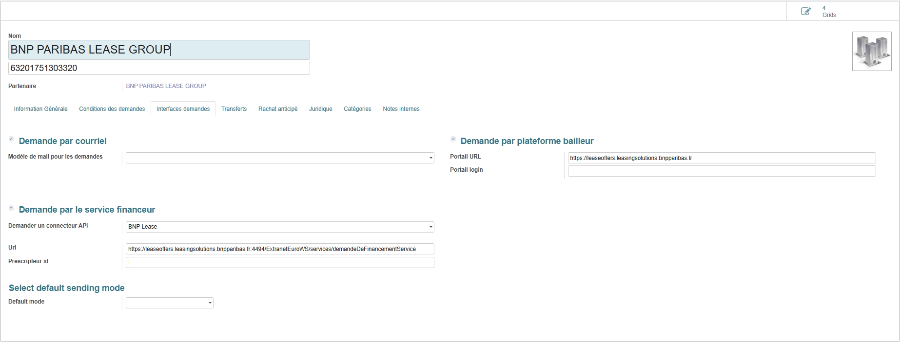 Lease4 > Refinancement > Configuration > Bailleur > Grids
