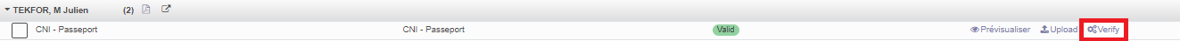 Après le chargement du document dans l'espace documentaire, celui-ci est vérifiable en cliquant sur le bouton Vérify.
